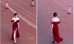 Khoảnh khắc nữ sinh diện váy đỏ xẻ tà vô tình lọt vào ống kính đã khiến cả trường đại học "náo loạn"